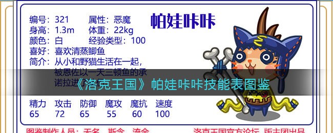 《洛克王國》中的帕娃咔咔如何?是否強大?游戲中有眾多寵物角色,而【帕娃咔咔】寵物的技能屬性是什么?該如何進行技能配置呢?本文將為大家介紹《洛克王國》帕娃咔咔的技能表及圖鑒,歡迎查看!