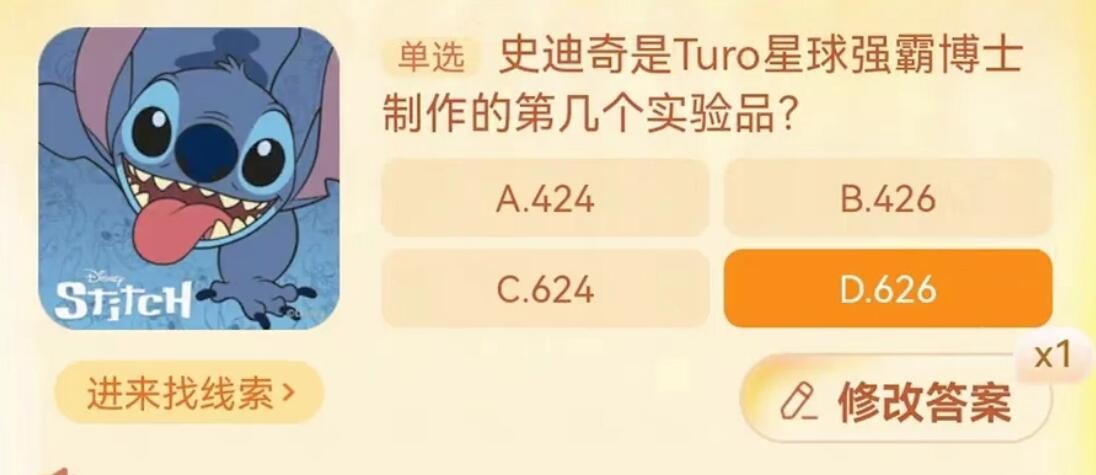 題目:史迪奇是Turo星球強霸博士創(chuàng)造的第幾個實驗體?