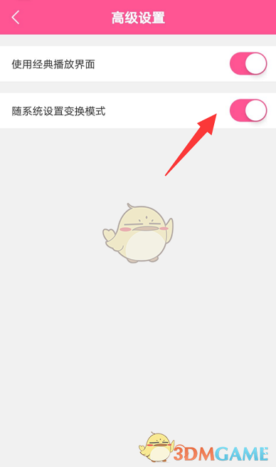 4、在高級(jí)設(shè)置中,找到“隨系統(tǒng)設(shè)置變換模式”選項(xiàng),并將右側(cè)的開(kāi)關(guān)切換為開(kāi)啟狀態(tài)。