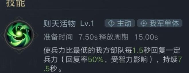 諸葛瑾擁有2御值,每1.5秒對(duì)兵力最低的部隊(duì)進(jìn)行一次恢復(fù),持續(xù)時(shí)間為7.5秒,總計(jì)恢復(fù)5次,間隔時(shí)間為15秒。盡管有15秒的間隔時(shí)間,他的治療能力仍然非常出色,幾乎可以媲美大喬。作為紫將中的頂級(jí)治療英雄,諸葛瑾以其僅需2御的屬性展現(xiàn)了極高的性價(jià)比。相比之下,雖然李典也是2御值,但其僅具備吸血效果,無法與諸葛瑾的治療效果相提并論。