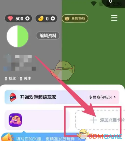 1、首先打開歡游應用,點擊“+添加興趣卡片”按鈕。