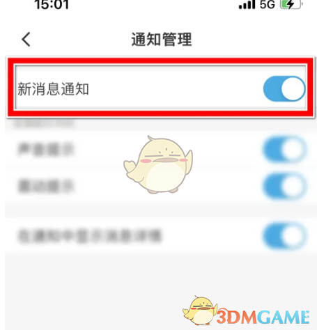 4、找到【新消息通知】選項(xiàng),點(diǎn)擊其旁邊的按鈕以啟用新消息提醒功能。