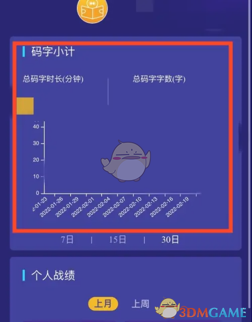 3、最后,進(jìn)入碼字統(tǒng)計(jì)頁面,即可查看關(guān)于碼字時(shí)間和字?jǐn)?shù)的詳細(xì)統(tǒng)計(jì)數(shù)據(jù)。