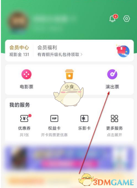 2、接下來,點(diǎn)擊相關(guān)按鈕,進(jìn)入“演出票”頁面。