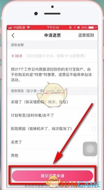 4、最后,選擇退票理由并提交申請(qǐng),請(qǐng)注意,app會(huì)收取一定的退票手續(xù)費(fèi)。