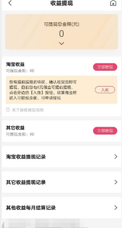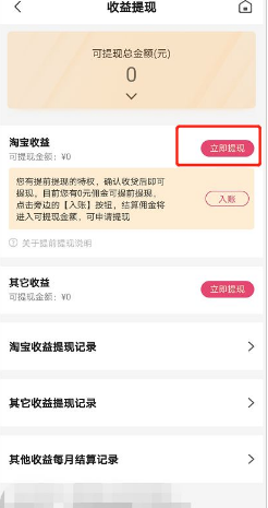 5、如果有可提現(xiàn)的收益,您可以選擇立即提現(xiàn)。如果具備提前提現(xiàn)的功能,還能選擇先入賬再進(jìn)行提現(xiàn)。