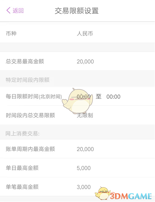 3、然后,選擇“交易限額設(shè)置”,進(jìn)入相關(guān)設(shè)置頁面,如下圖。