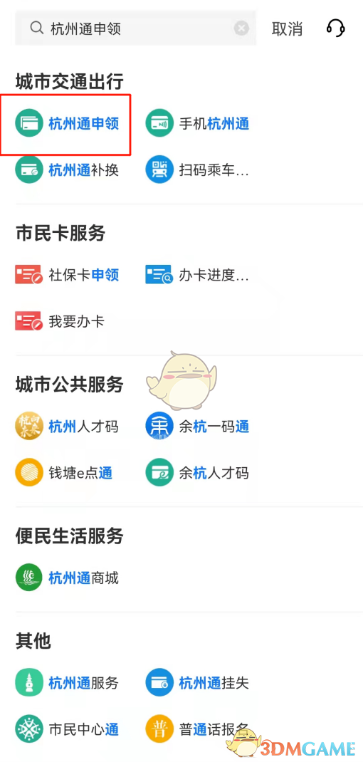 1、在市民卡APP的首頁搜索“杭州通申領(lǐng)”