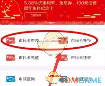 2、在新頁面中,尋找并選擇市民卡補換的功能。
