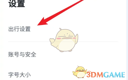 3、在設(shè)置界面中找到“出行設(shè)置”選項,點擊進(jìn)入出行配置頁面。
