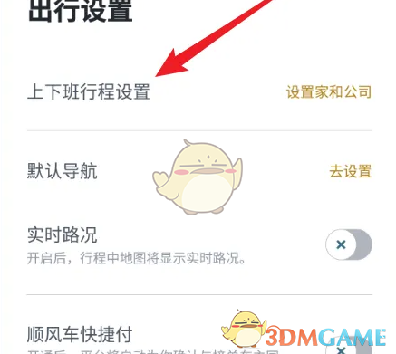 4、在出行設(shè)置頁面,點擊“上下班行程設(shè)置”選項,關(guān)閉相關(guān)設(shè)置即可。