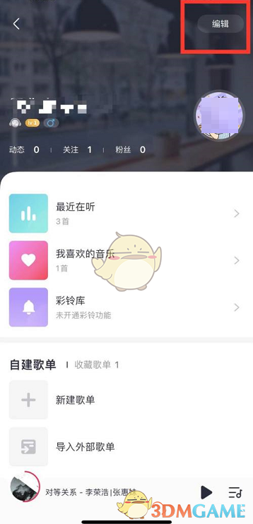 1、首先打開(kāi)咪咕音樂(lè)APP,進(jìn)入個(gè)人主頁(yè),然后點(diǎn)擊右上角的編輯按鈕。