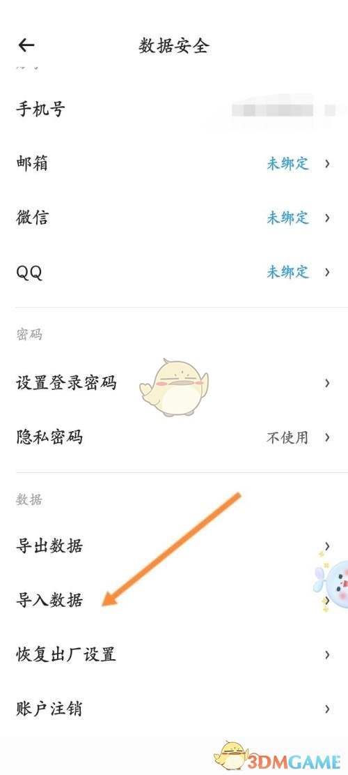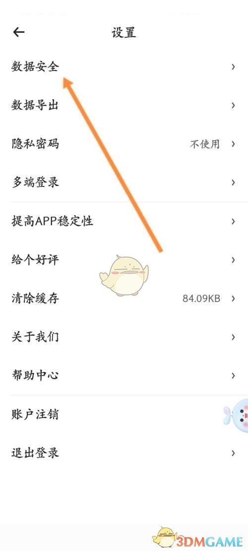 3、在設(shè)置頁(yè)面中選擇“數(shù)據(jù)安全”選項(xiàng)。