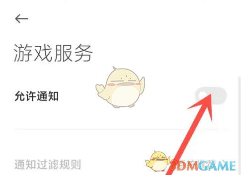 5、在通知管理頁面,將“允許通知”的開關(guān)關(guān)閉,即可停止接收小米游戲中心的所有推送通知。