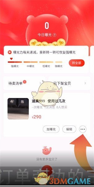 3、進入“我在賣的”頁面后,點擊商品訂單旁的三個小點;