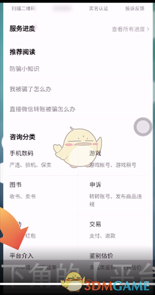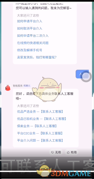 3、在客服中心頁面繼續(xù)上滑,點擊左下角的【平臺介入】選項,然后發(fā)送“人工”即可開始與人工客服溝通。