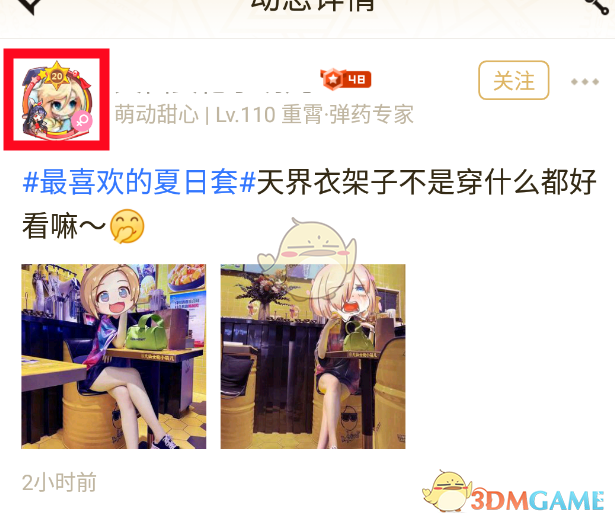 3、在動(dòng)態(tài)詳情頁面,點(diǎn)擊發(fā)布動(dòng)態(tài)的用戶頭像,進(jìn)入該用戶的個(gè)人動(dòng)態(tài)頁面。