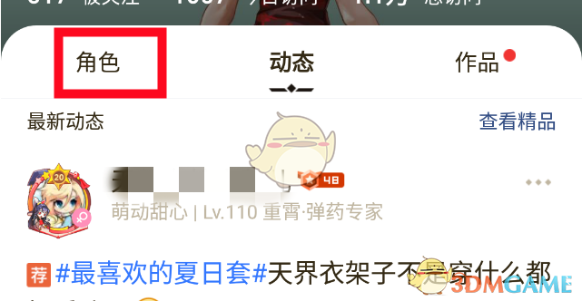 4、進(jìn)入個(gè)人動(dòng)態(tài)頁面后,點(diǎn)擊“角色”選項(xiàng)。