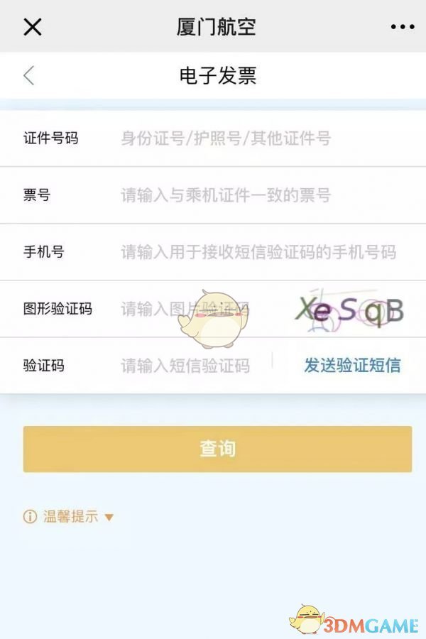 2、輸入證件號碼、票號和手機(jī)號后即可查詢并申請發(fā)票。