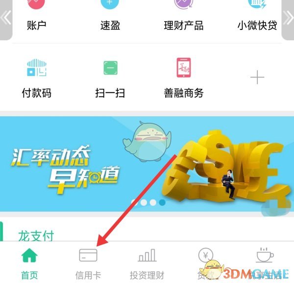 3、完成登錄后,點(diǎn)擊頁(yè)面上的信用卡選項(xiàng)。
