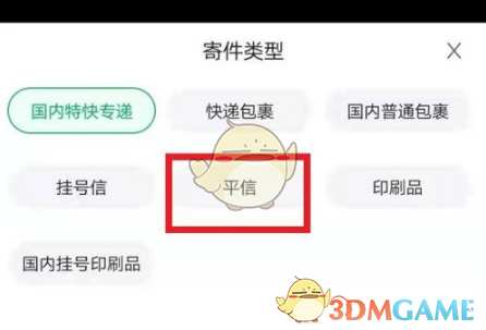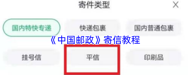 3、在物品類型頁面,選擇“平信”作為寄送類型。