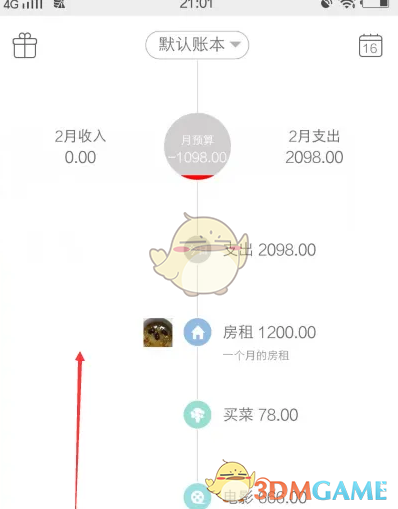 1、打開“口袋記賬”APP,向上滑動(dòng)界面,如下圖所示: