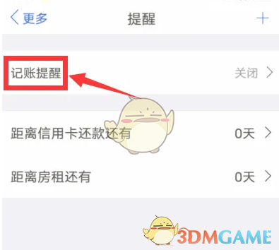3、在提醒頁面找到并點擊【記賬提醒】。