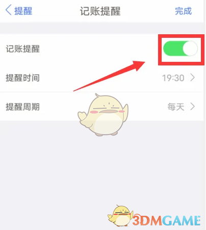 4、進入記賬提醒頁面后,只需關(guān)閉【記賬提醒】選項即可。