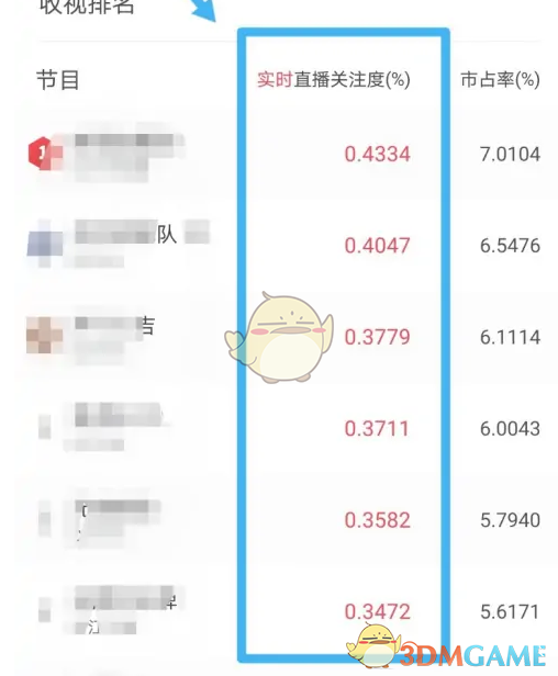 3、最后,您將看到當(dāng)天的電視收視率數(shù)據(jù),詳情如下所示。