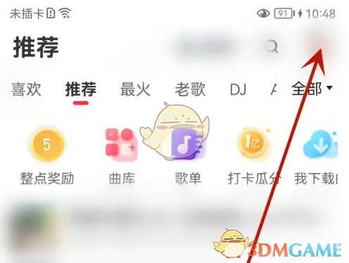 1、首先,在快音主界面點(diǎn)擊“頭像”按鈕。