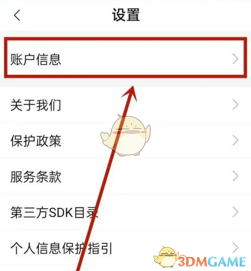 3、進入設(shè)置頁面后,點擊“賬戶信息”選項。
