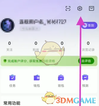 2、進(jìn)入“我的”后,點(diǎn)擊右上角的設(shè)置圖標(biāo)。