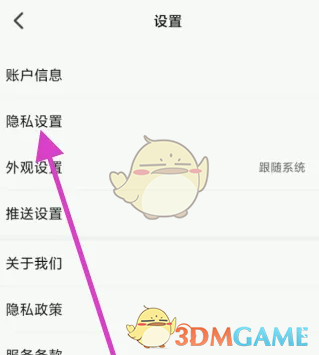 3、進(jìn)入設(shè)置頁面后,點(diǎn)擊“隱私設(shè)置”選項(xiàng)。
