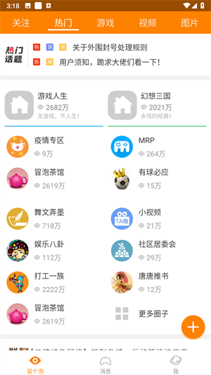 1、首先,啟動(dòng)冒泡社區(qū)軟件并進(jìn)入首頁,在這里你會(huì)看到每天更新的最新圈子信息。