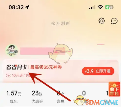 2、在頁(yè)面中找到并點(diǎn)擊上方的“省省月卡”選項(xiàng)。