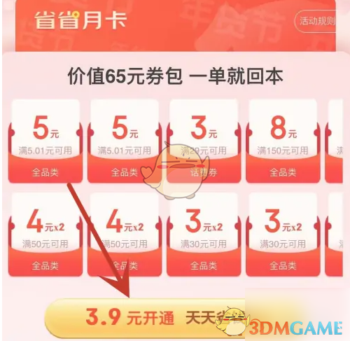 3、按照提示完成開(kāi)通支付,即可成功獲得省省月卡。