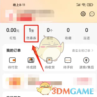2、進(jìn)入“我的”頁面后,選擇【優(yōu)惠券】選項(xiàng)。