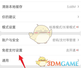 3、進(jìn)入賬戶設(shè)置后,點擊“免密支付設(shè)置”即可。