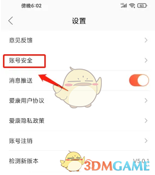 2、在設(shè)置頁面,選擇【賬號安全】選項(xiàng)。