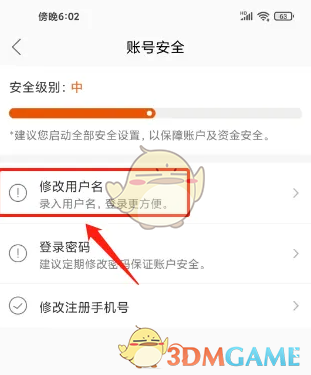 3、進(jìn)入“賬號安全”頁面后,點(diǎn)擊【修改用戶名】。