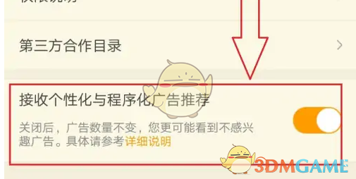 3、找到“接收個(gè)性化與程序化廣告推薦”的開關(guān),將其關(guān)閉。
