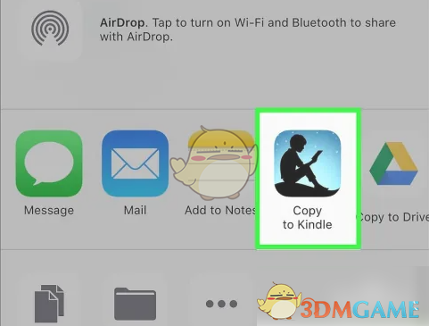 6、選擇“復(fù)制到Kindle”選項(xiàng)。您可能需要在菜單頂部滑動(dòng),才能找到該選項(xiàng)。這樣,MOBI文件便會(huì)在Kindle應(yīng)用中打開。