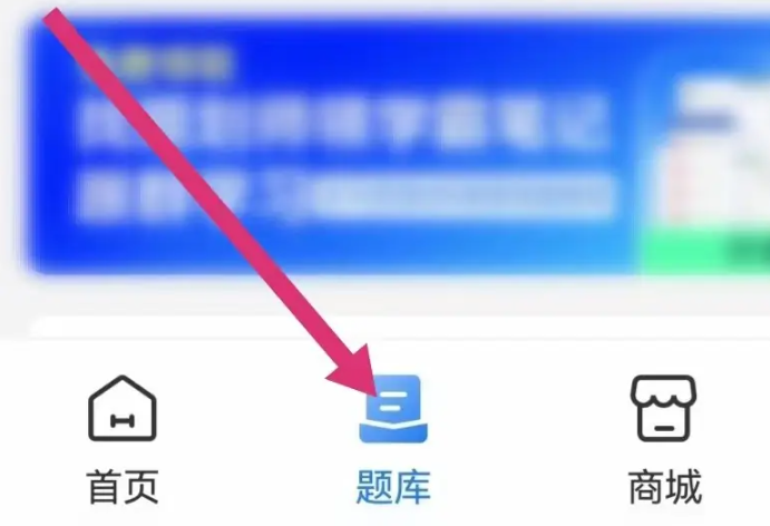2、在首頁底部找到并點(diǎn)擊【題庫】圖標(biāo),進(jìn)入題庫頁面;