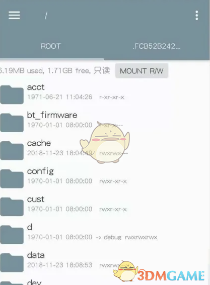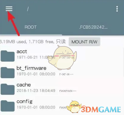 2、進(jìn)入后,你就可以看到RE管理器的主界面。如圖所示,若你需要進(jìn)入其他目錄,如home,只需點擊相應(yīng)的選項(三點菜單)。