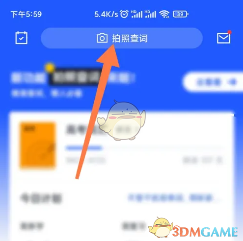 1、打開百詞斬APP,點(diǎn)擊頁面上方的【拍照查詞】選項(xiàng)。