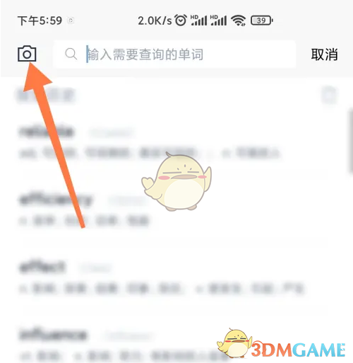 3、進(jìn)入拍照查詞界面,直接對準(zhǔn)目標(biāo)單詞,點(diǎn)擊【圓形按鈕拍照】即可進(jìn)行拍照查詞。
