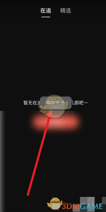 3、進入“在追”頁面后,點擊下方的【刪除】選項。