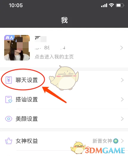2、在個人主頁頁面,點擊【聊天設(shè)置】選項。
