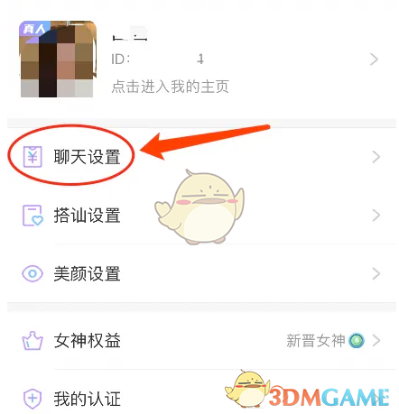 2、接著在個(gè)人頁(yè)面中,點(diǎn)擊頭像下方的【聊天設(shè)置】;