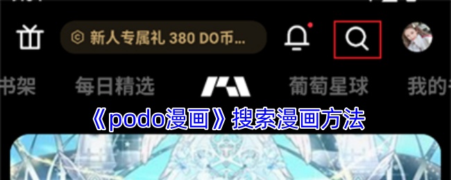 1、首先啟動PODO漫畫APP,進入后點擊界面右上角的放大鏡圖標;